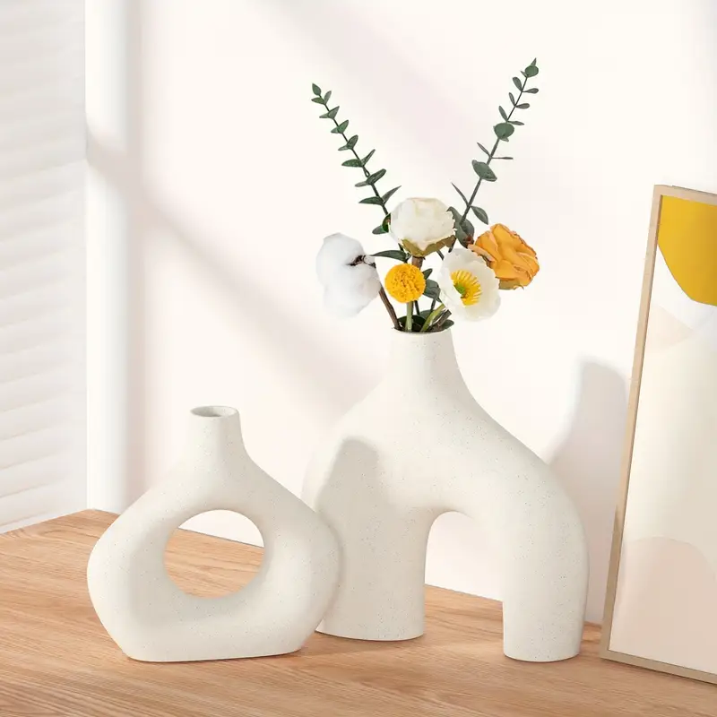 Enhance your space with this Boho Ceramic Vase Set of 2, designed in a chic Nordic minimalist style. Perfect for table centerpieces, living rooms, bedrooms, or shelf displays, these vases add a touch of modern elegance and earthy charm. Their smooth ceramic finish and neutral tones blend effortlessly with any décor, whether filled with flowers or left empty as statement pieces. Stylish, versatile, and beautifully crafted, they’re a lovely addition to any home interior.